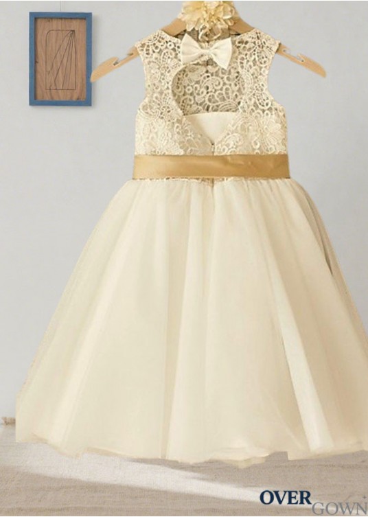All-Season Princess Occasion Dress in Tulle - Bowknot Natural Waist Scoop