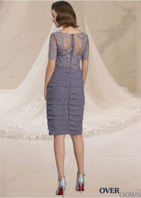 Knee-Length Chiffon Mother of the Bride Dress with Half Sleeves