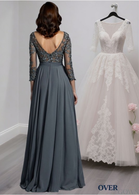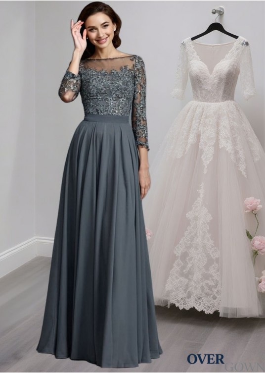 Bateau Neck Chiffon A-Line Mother of the Bride Dress with 3/4 Sleeves