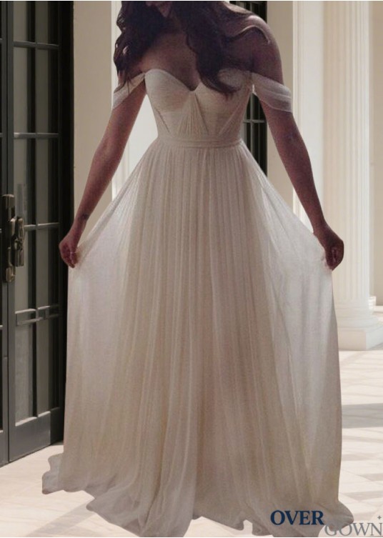 Beaded Chiffon Beach Bridal Gown Floor Length