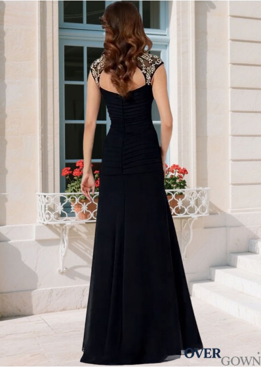 Elegant Black Full Length Mother of the Bride Gown with Cap Sleeves
