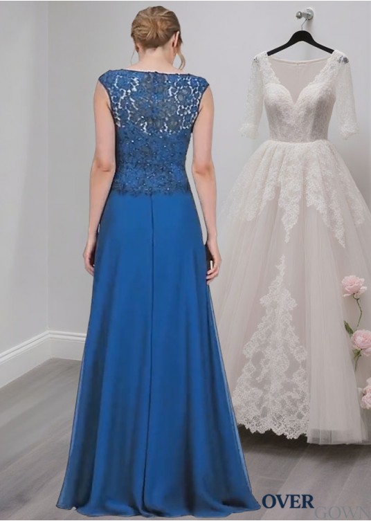 Blue Chiffon A-Line Mother of the Bride Dresses with Cap Sleeves