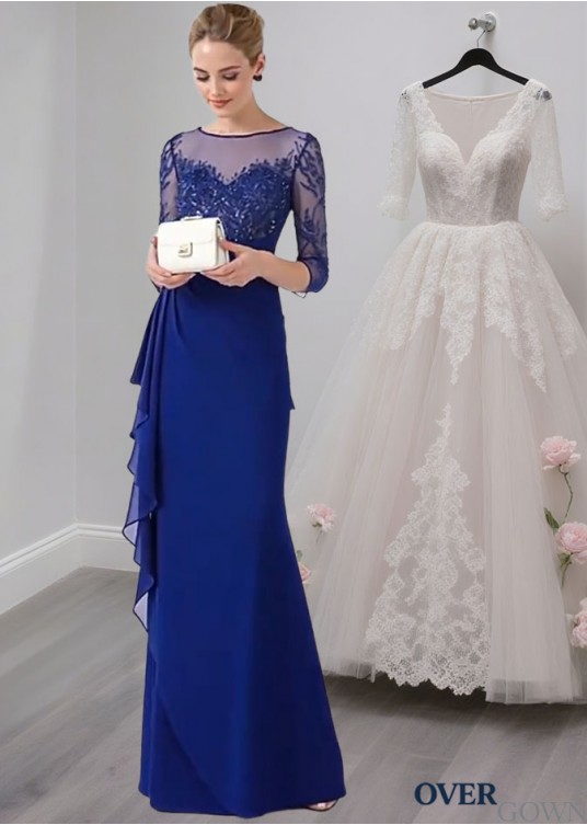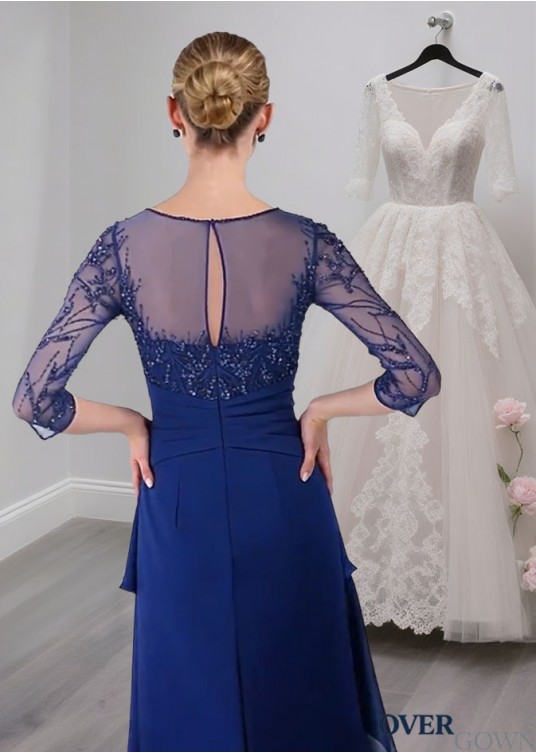 Elegant Blue Chiffon Mother of the Bride Dress with Illusion Sleeves