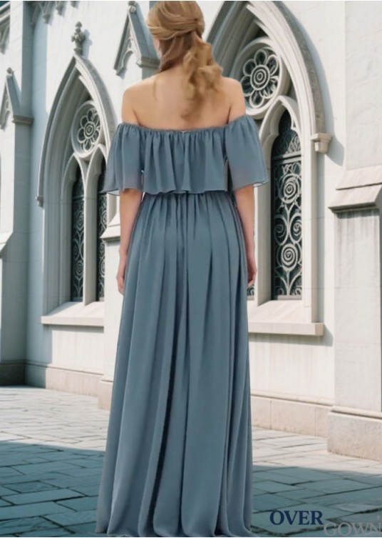 Off-the-Shoulder Sleeveless A-Line Chiffon Bridesmaid Dress with Pleated Detail