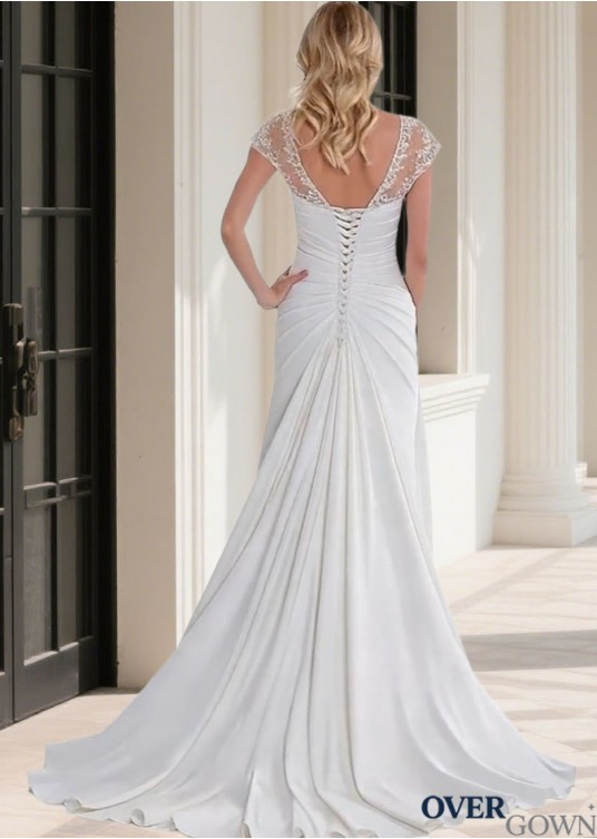Cap Sleeve Full Length Chapel Train Bridal Gown