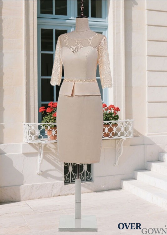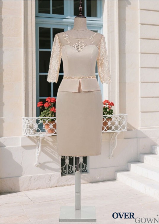 Acetate Satin & Lace Sheath Mother of the Bride Dress Knee Length