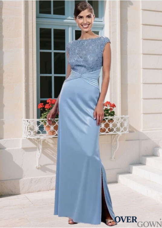 Elegant Chiffon Mother of the Bride Dress – Full Length Bateau Neck Sheath with Cap Sleeves