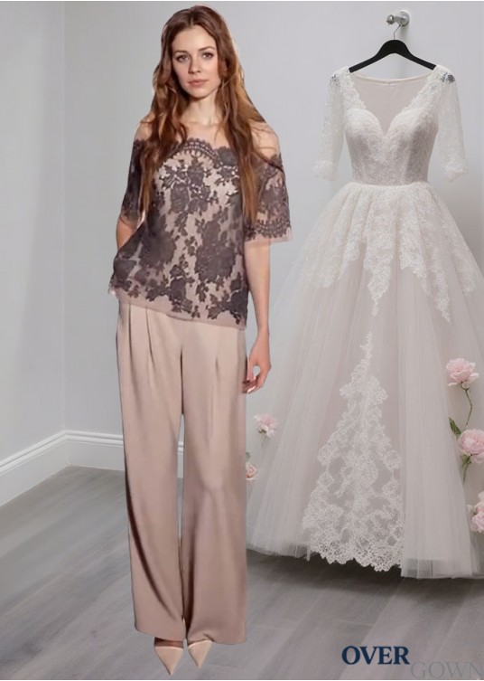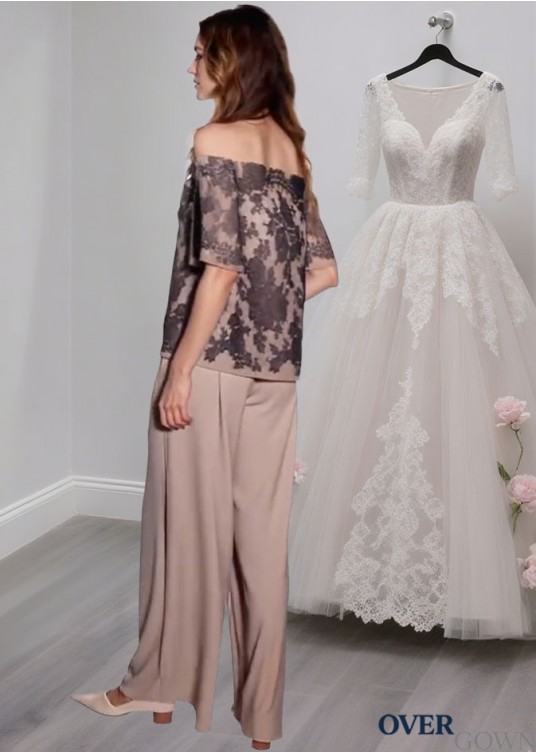 Mother of the Bride Pantsuit With Off The Shoulder and Shorts Sleeves