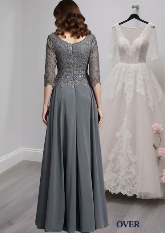 Chiffon Scoop Neck A-Line Mother of the Bride Dress with Half Sleeves