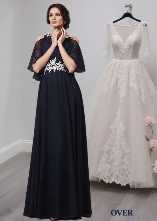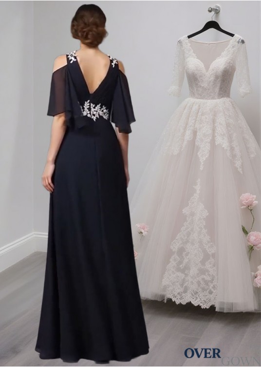Mother of the Bride Dress with Straps Neckline and 1/2 Sleeves