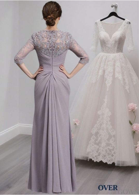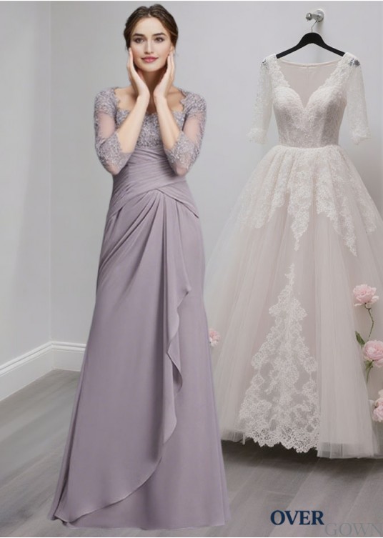 Chiffon Floor Length Mother of the Bride Dress Sweetheart and 3/4 Sleeves
