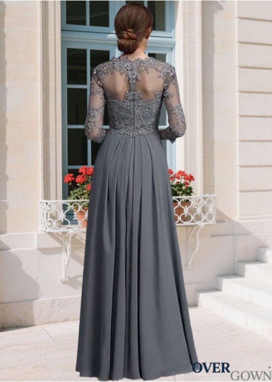 Elegant Chiffon V-Neck A-Line Mother of the Bride Dress with Ruffles and 3/4 Sleeves – Floor Length