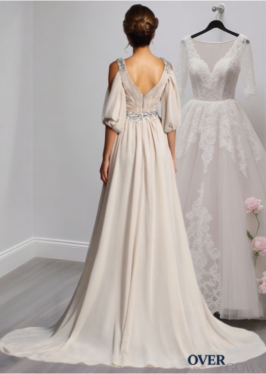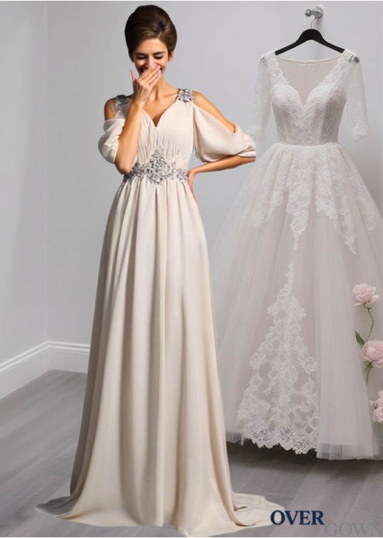Elegant V-Neck Chiffon Mother of the Bride Dress with Beading and Court Train