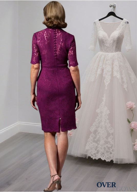 Lace Knee-Length Mother of the Bride Dresses with Square Neck and Sleeves