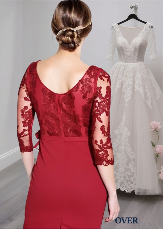 Red Mother of the Bride Dress with 3/4 Sleeves - Wedding Party Dresses