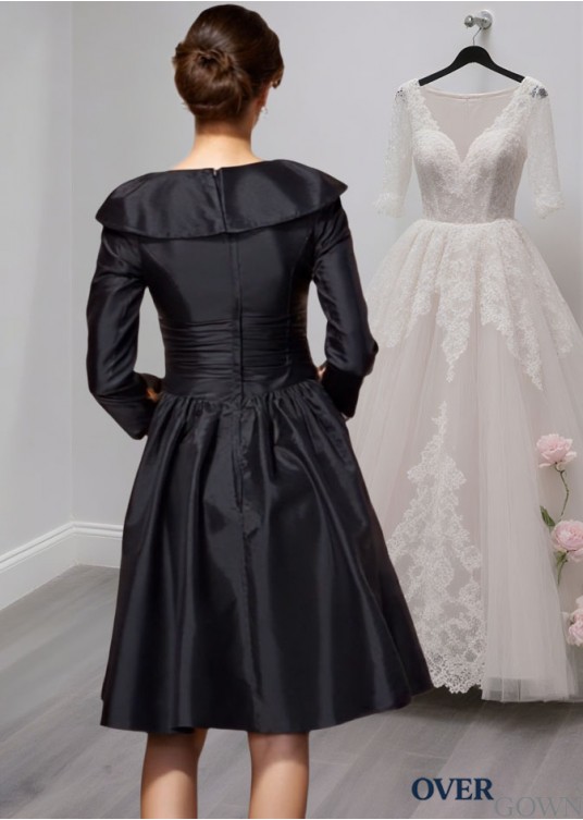 Short Taffeta V-Neck A-Line Mother of the Bride Dress with 3/4 Sleeves