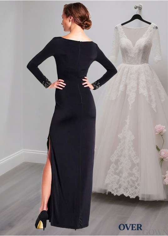 Black Chiffon Mother of the Bride Dress – Evening Gowns with Long Sleeves