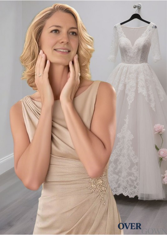 Scoop Neck Silk-Like Chiffon Mother of the Bride Dresses with Sleeves
