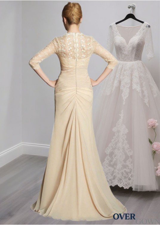 Sweetheart Chiffon Mother of the Bride Dress with Lace and 3/4 Sleeves – A-Line Gown