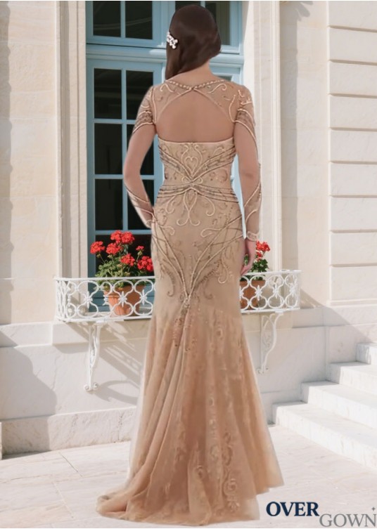 Elegant Tulle Bateau Neck Illusion Sleeve Sheath Mother of the Bride Dress – Full Length