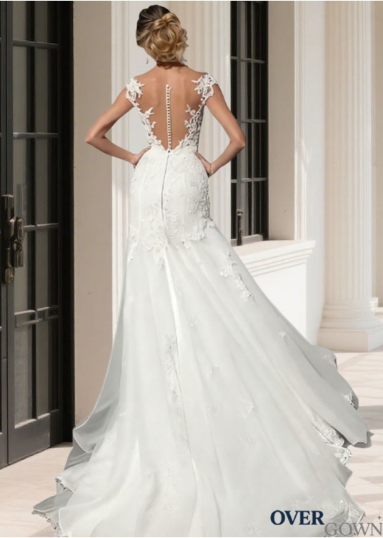Elegant Tulle Lace V-Neck Mermaid Wedding Dress with Chapel Train