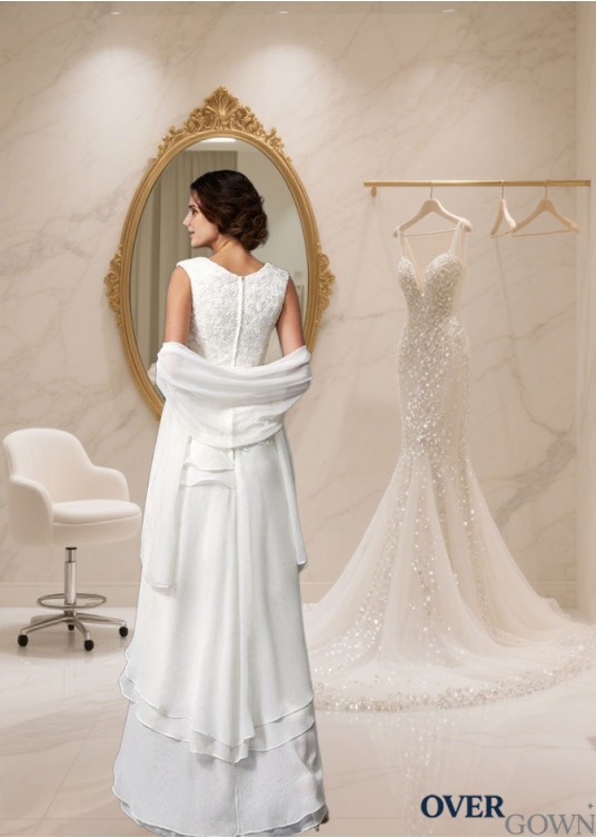 Lace Embellished Chiffon Sleeveless Ankle Length Mother of the Bride Dress