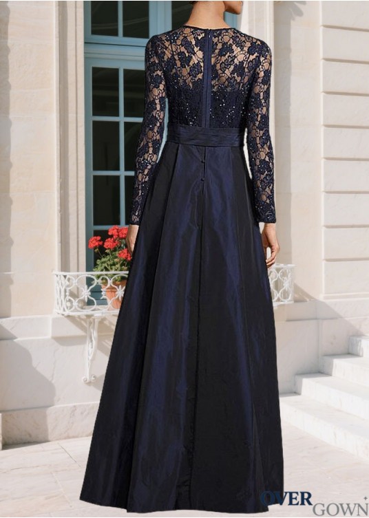Elegant Lace & Taffeta Jewel Neck A-Line Mother of the Bride Dress – Full Length