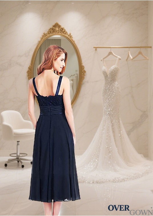 Tea-Length Chiffon A-Line Mother of the Bride Dress with V-Neck & Coat Jacket Sleeve