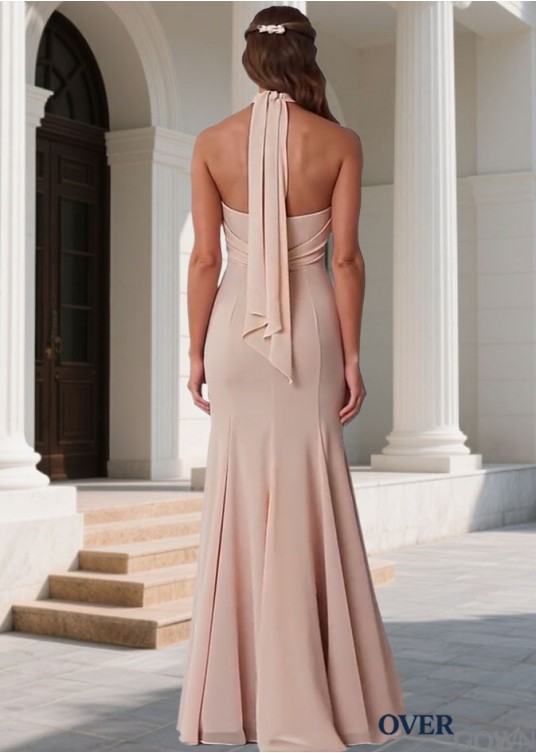 Chiffon Halter Mermaid Bridesmaid Dress – Full Length Trumpet Gown