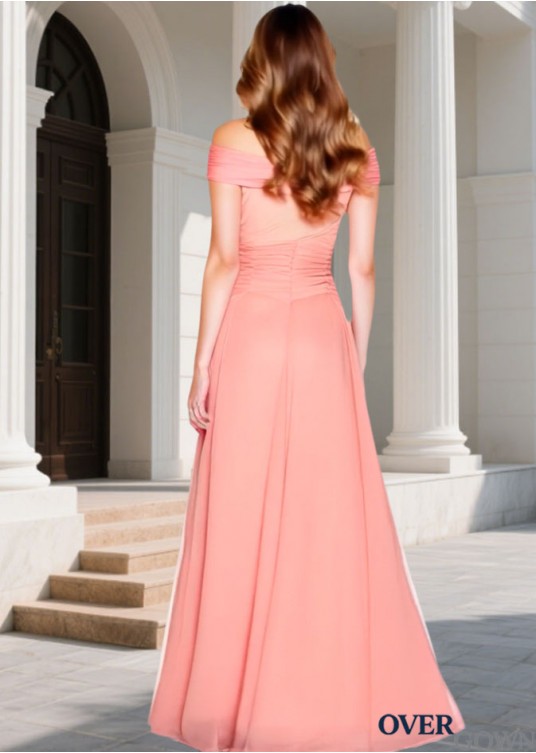 Off-the-Shoulder Chiffon Bridesmaid Dress – Full Length Basque Waist Gown
