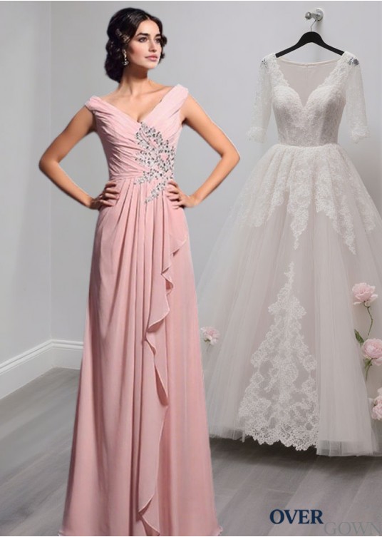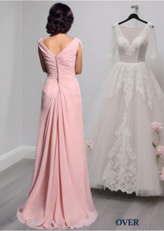 Pink Chiffon V-Neck Sleeveless Mother of the Bride Dress with Beading