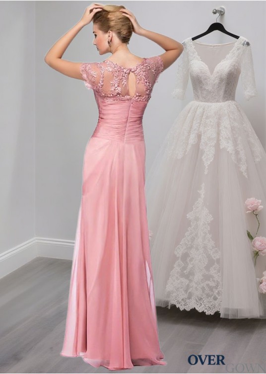 Elegant Pink Silk-Like Chiffon Illusion Sleeve Mother of the Bride Dress