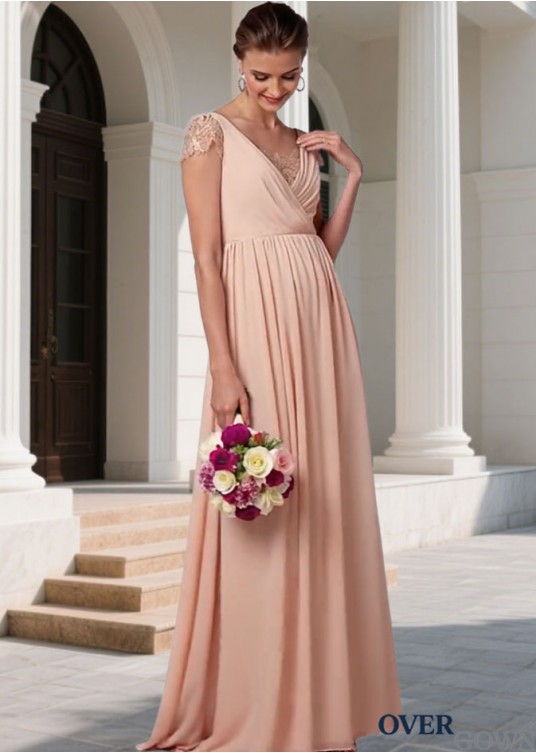 V-Neck Chiffon Bridesmaid Dress – Full Length A-Line Elegant Wedding Party Gown