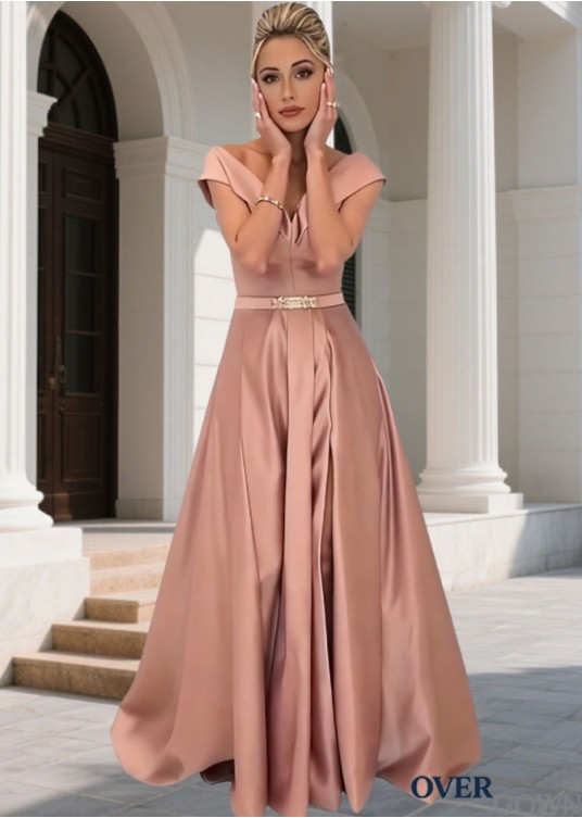 Long Prom Evening Dress – Satin Off-the-Shoulder Formal Gowns