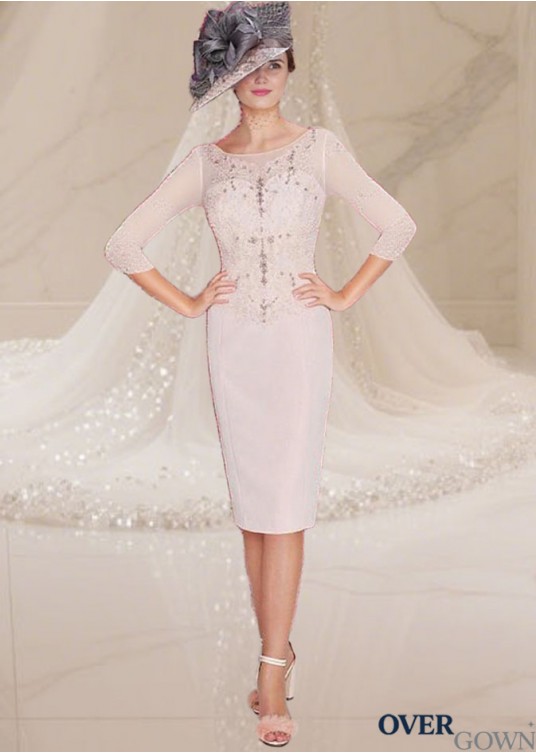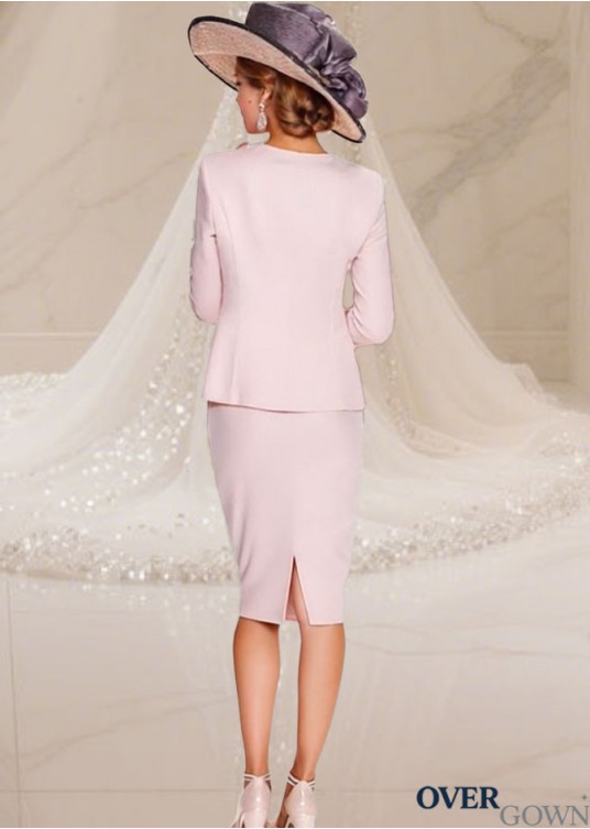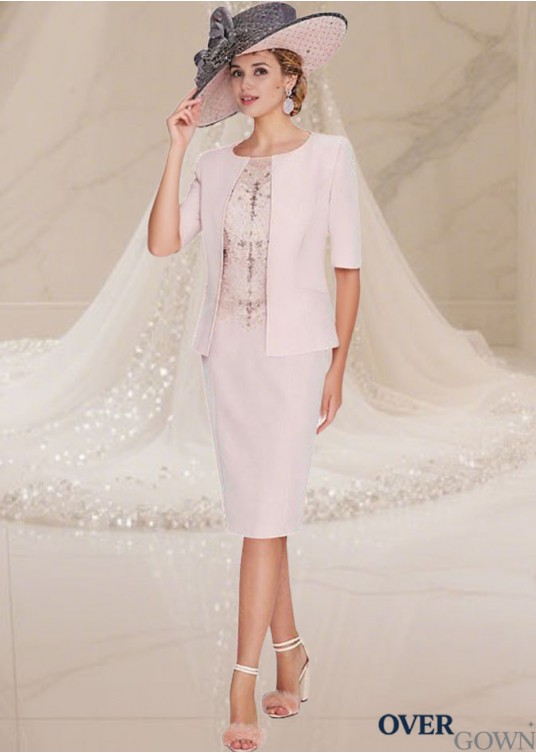 Pink Satin Mother of the Bride Dress with Jacket – Bateau Neck Knee-Length Sheath