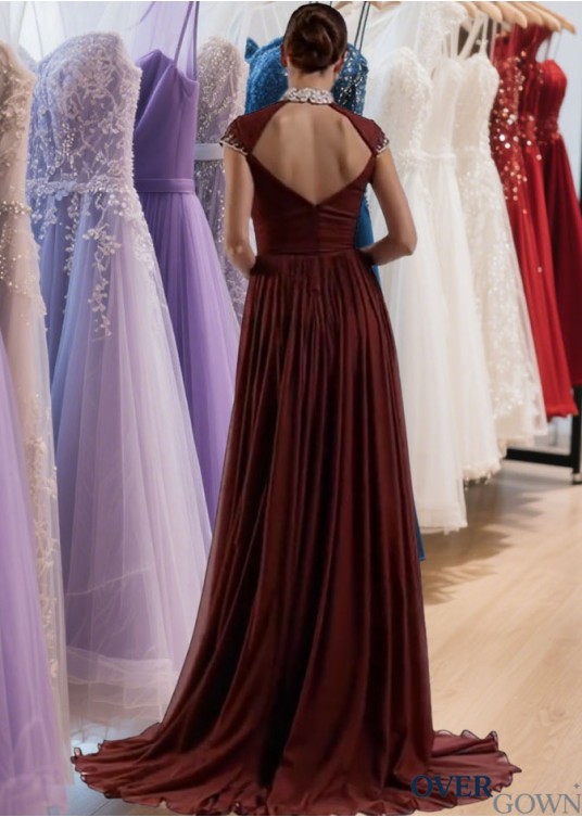 Chiffon High Collar Evening Dresses – A Line Formal Gowns With Beading