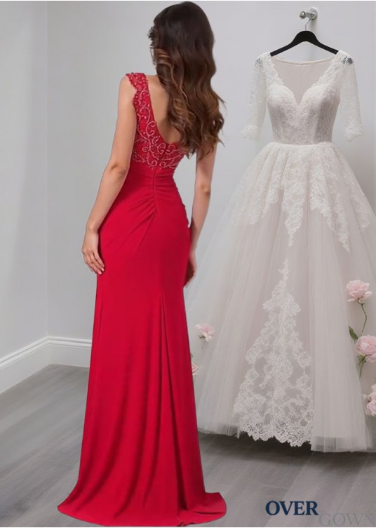 Red Sheath Evening Dresses - V Neck Dress For Mother of the Bride