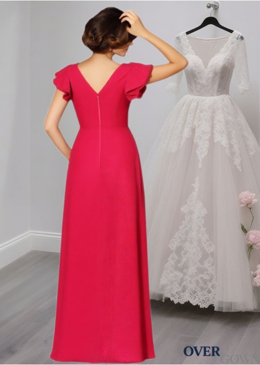 Floor-Length Chiffon V-Neck Mother of the Groom Dresses with Ruched Cheap