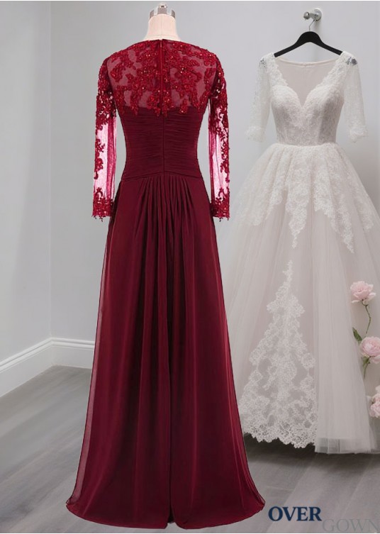 Red Tulle A-Line Evening Dresses with Scoop Neck and Illusion Sleeves