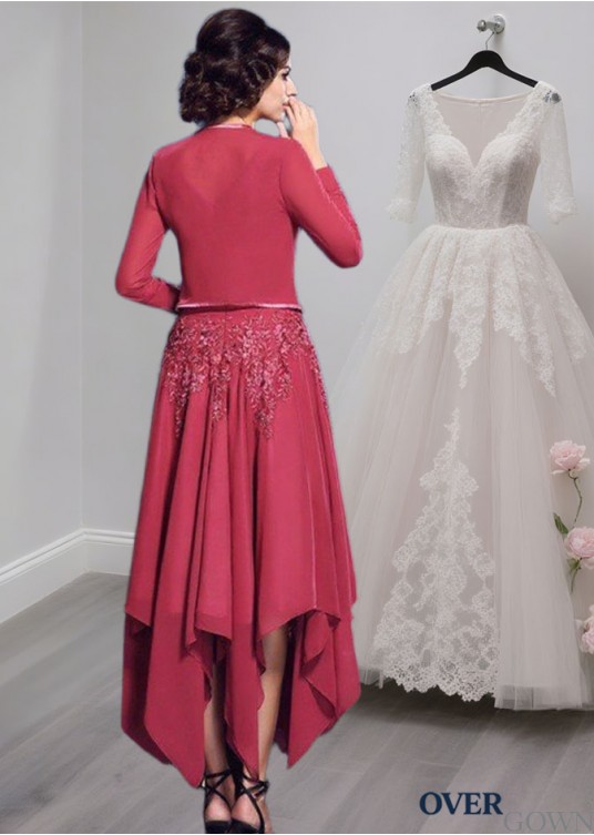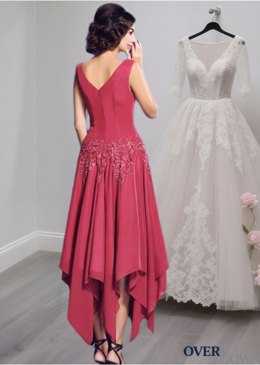 Elegant V-Neck Chiffon Mother of the Bride Dress with Asymmetrical Hemline