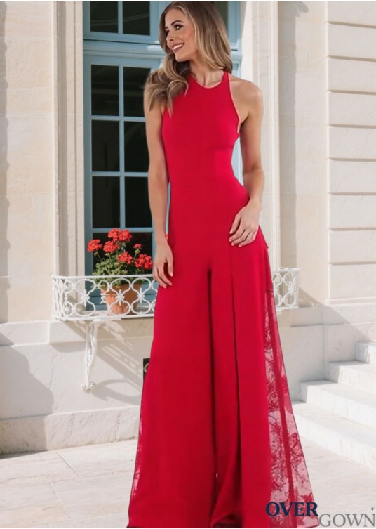 Red Halter Floor Length Evening Suits For Women Straight Silhouette