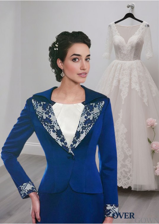 Elegant Blue Satin Mother of the Bride Dress with Jacket – Full Length Gowns
