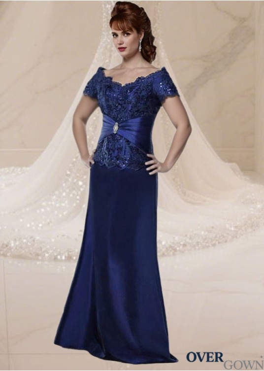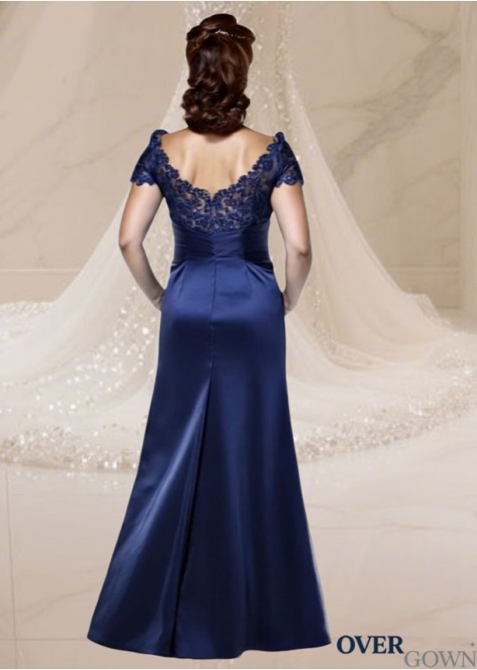 Off-the-Shoulder Stretch Satin A-Line Full-Length Mother of the Bride Dress