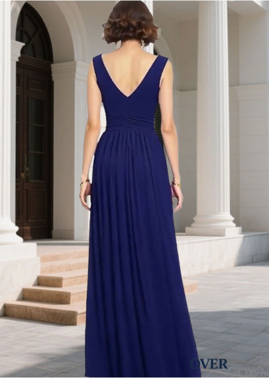 Royal Blue V Neck Chiffon Bridesmaid Dresses A-Line Gown