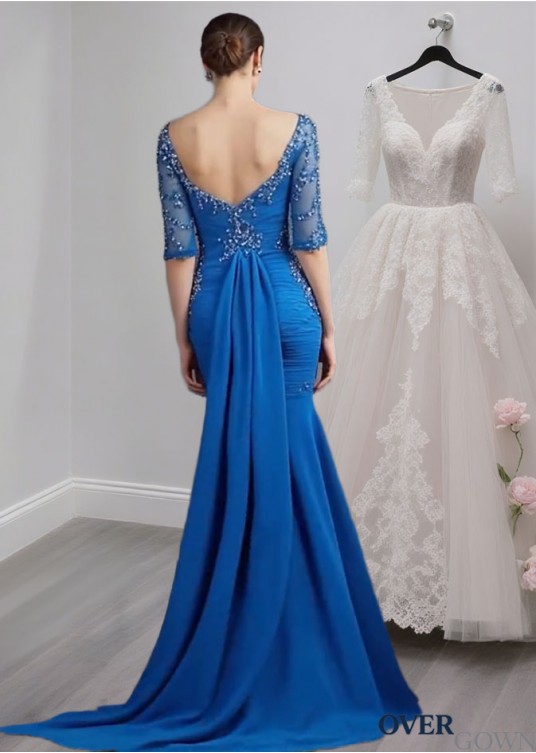 Chiffon Half Sleeves Trumpet Mother of the Bride Dress with Sweep Train
