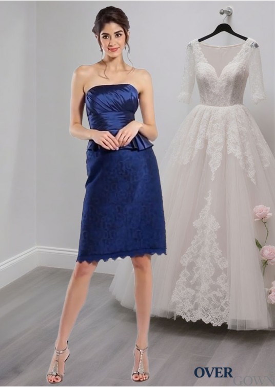 Strapless Taffeta Sheath Mother of the Bride Dress with Beading – Knee Length