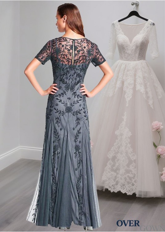 Elegant Tulle Jewel Neck Short Sleeve Full-Length Mother of the Bride Dress