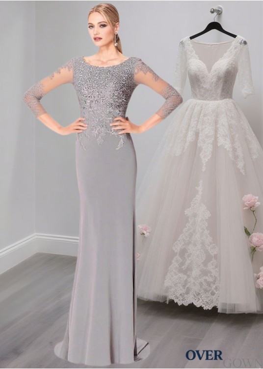 Sheath Tulle Evening Mother of the Bride Dress with Long Sleeves