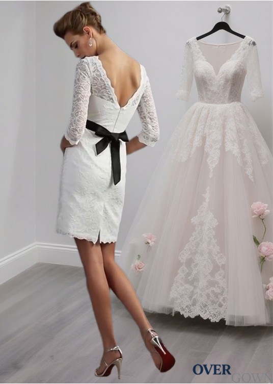 White Lace Scoop Neck Short Mother of the Bride Dress with 1/2 Sleeves
