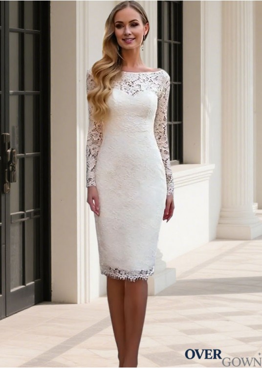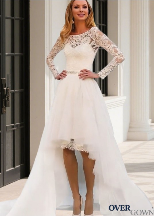 Illusion High Neck Sheath Wedding Gown Sweep Train Long Sleeves